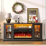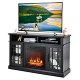 2DORTALADORTALA Electric Fireplace TV Stand for TVs Up to 55 Inches, Fireplace Entertainment Center with Cabinets & Adjustable Shelves, Remote Control, Black